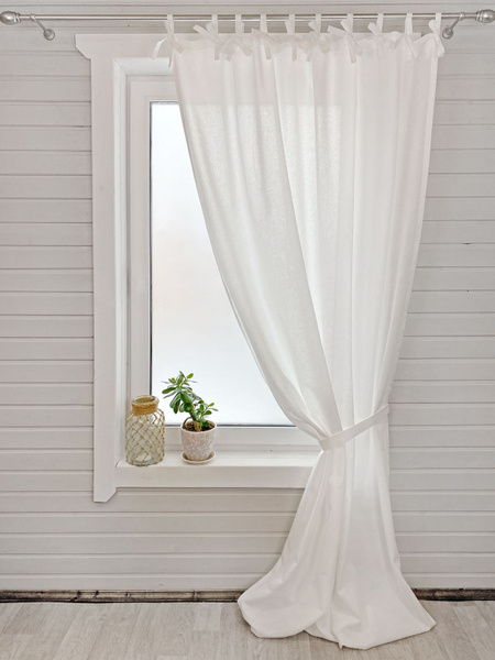 Штора IZKOMODA льняная "Арина" на петлях , 260х145см, Белый, Лен
