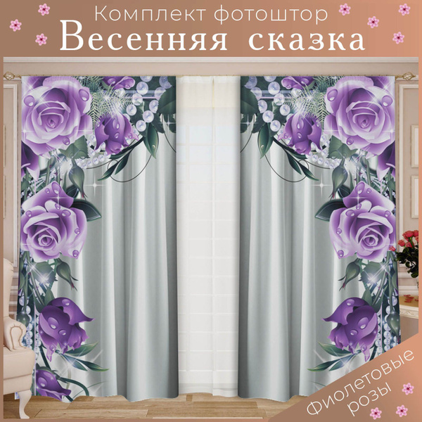 Комплект штор ТамиТекс Шторы , 260х145см, Фиолетовые розы, Полиэстер