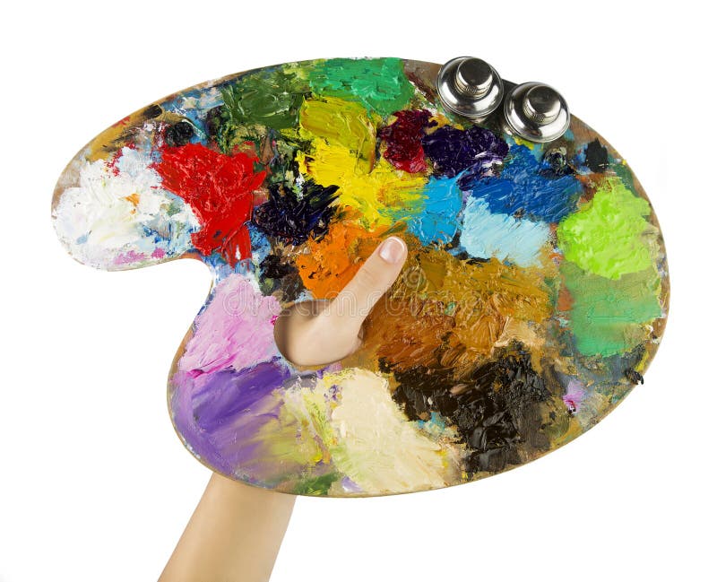 Руки художников держа кисть и палитру Стоковое Изображение